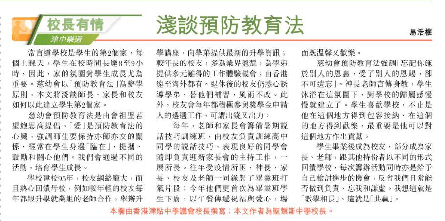 淺談預防教育法 (星島日報 ) 17/4/2023